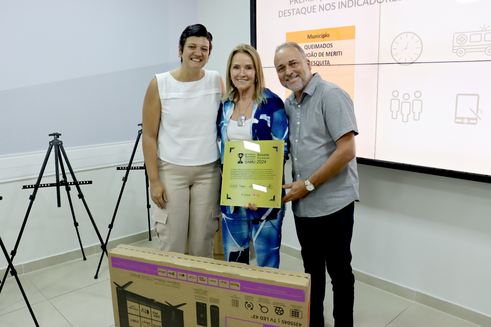 Nesta quinta-feira (19/12), a sede do Cisbaf foi palco do 3º Prêmio Regional de Excelência do SAMU Baixada Fluminense, evento que celebrou o desempenho das bases descentralizadas da região. A cerimônia foi conduzida pela Secretária Executiva do Cisbaf, Dra. Rosangela Bello, com o apoio da Diretora Técnica, Dra. Márcia Ribeiro, da Coordenadora Geral da Central de Regulação, Dra. Simone Maçana, do Coordenador de Enfermagem, Enf. João Paulo, e do Assessor Operacional, Felipe Barros.