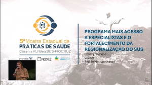 Nesta terça-feira (29.04), o Cisbaf participou da 5ª Mostra Estadual de Práticas de Saúde na sede da Fiocruz, no Rio de Janeiro. A iniciativa é realizada pelo Cosems RJ (Conselho de Secretarias Municipais de Saúde do Rio de Janeiro) e pela IdeiaSUS Fiocruz com o objetivo de promover a troca de experiências para a consolidação e o fortalecimento do SUS (Sistema Único de Saúde) no estado do Rio de Janeiro.