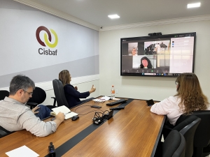A reunião foi conduzida pela Secretária Executiva, Dra. Rosangela Bello, que também teve a participação dos gestores do Cisbaf, Dra. Márcia Ribeiro (Diretora Técnica) e Eduardo Ribeiro (Diretor Administrativo/Financeiro).