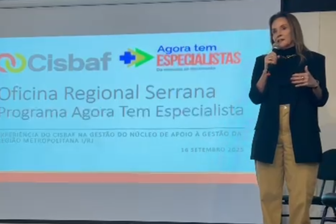 Nesta terça-feira (16.09), o Cisbaf realizou uma palestra na Oficina Regional Serrana, do Programa Agora Tem Especialistas, do Ministério da Saúde, que teve como objetivo promover o debate para o alinhamento e aprimoramento das ações do programa na Região Serrana.