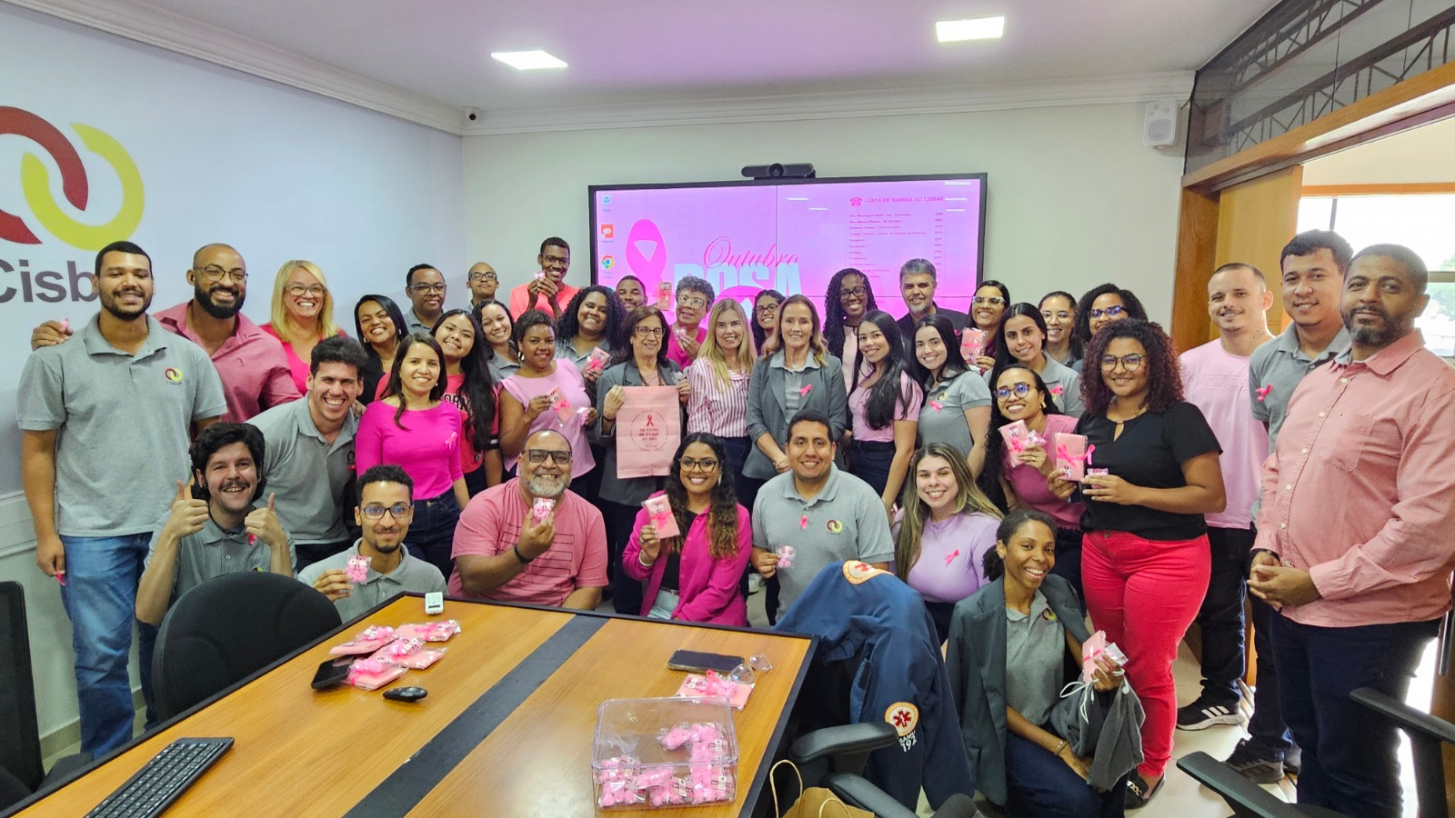 A ação contou com a exibição de um vídeo explicativo de conscientização sobre o combate ao câncer de mama e de colo de útero e foi feita a entrega de brindes da campanha para os colaboradores da Sede Administrativa e da Central de Regulação de Urgências Regional da Baixada Fluminense.